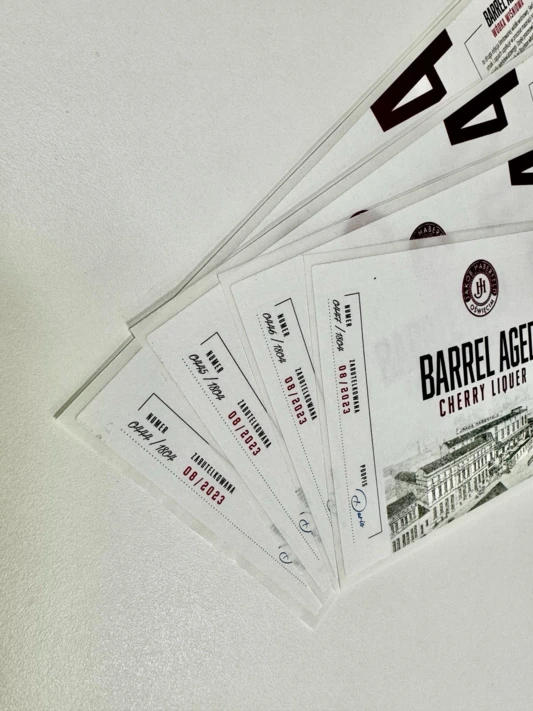- Trykte etiketter forgyldt/sølvbelagt ved varmstempling